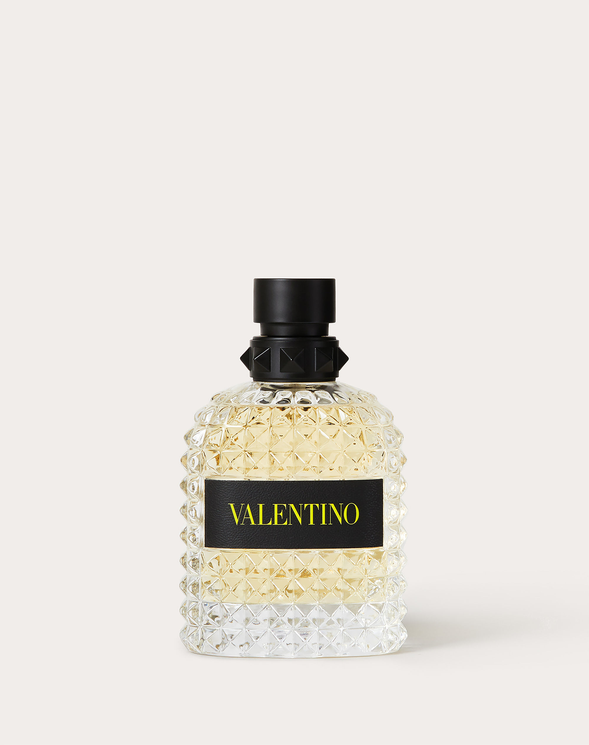 The bottle is designed with the iconic Valentino Rockstud: inspired by Roman architecture; it transforms the bottle from classic to edgy. The bottle is multifaceted and energized by a neon yellow signature.